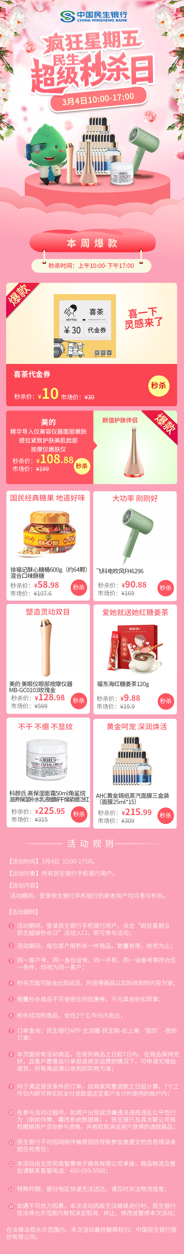 民生银行信用卡:疯狂星期五 民生超级秒杀日