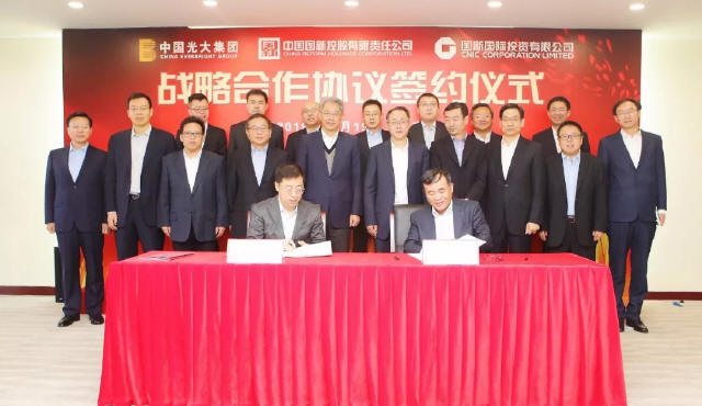 根据光大集团与中国国新的战略合作协议,双方将充分发挥各自优势,在综合金融服务、生态环保、文化旅游、健康服务、航空产业等领域展开合作,实现优势互补、互利双赢。