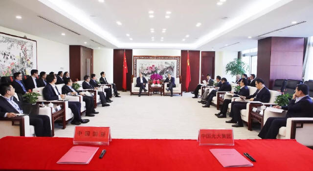 今年6月,光大集团与中国国新举行战略合作会谈,双方就支持“一带一路”倡议和人民币国际化,促进双方在飞机租赁、基金、投资等领域的全面战略合作进行了深入交流。