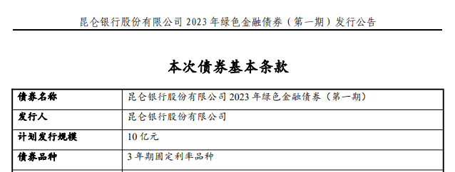 原标题:昆仑银行、汉口银行将发行2023年首期绿色金融债券