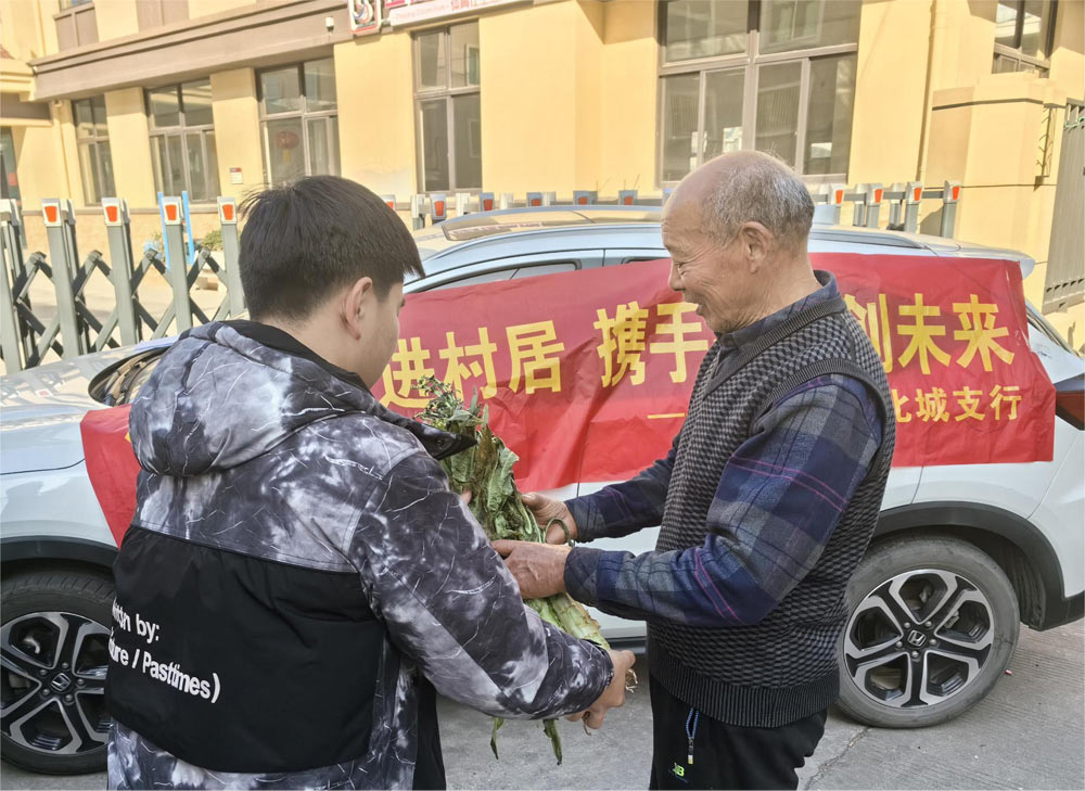 恰逢传统腊八佳节,这1000多斤的莴笋便已抵达北城支行,北城支行工作人员们分别成立腊八小分队,一个小分队进村开展行动,另一个小分队在营业厅开展行动,共同为居民们送上腊八祝福。只见北城支行的工作人员将一捆捆绑着数十棵鲜嫩的莴笋搬到车上,分别前往后庄村、塔水桥村等周边村居,为居民送上莴笋及腊八祝福,同时还为客户讲解莴笋所具有的营养价值,如镇静安神、排毒清肠、抗癌防癌等功效。火热的活动,热情高涨的居民,使得短短半天的时间,便送完了这1000多斤的莴笋。