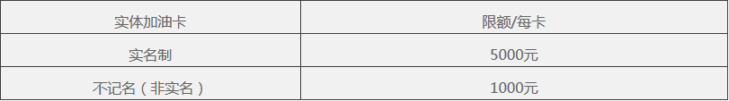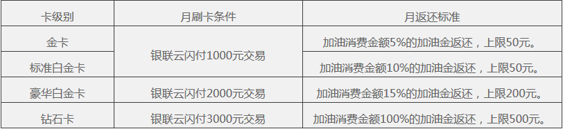 *各卡级别加油返还权益达标门槛条件即可享返还的加油金如下表: