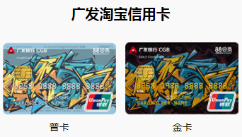 广发淘宝联名信用卡是我行与淘宝合作,针对年轻人推出的信用卡产品。普卡为透明卡板,金卡为黑色卡板,图案采用大胆抽象涂鸦风格,象征年轻人的果敢、自由与活力。淘宝卡使用支付宝支付也可累计广发积分,同时持卡人可享多种休闲娱乐权益半价购特权,还有新客户办卡首年权益加码,为年轻人打造缤纷多彩的用卡体验。