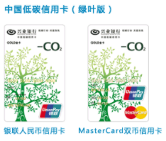 成功申办中国低碳信用卡(绿叶版):即可享消费满额送碳权益,核卡首年刷卡交易金额满3万元,即可获赠由兴业银行出资购买的1吨碳减排量,碳减排量由上海环境能源交易所提供。
