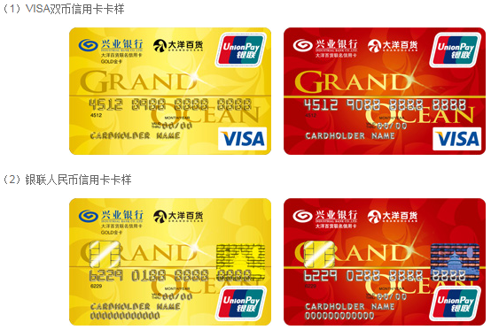 兴业银行大洋百货联名信用卡真正实现了兴业银行信用卡与大洋百货VIP会员卡的二卡合一,客户可同时享受兴业银行信用卡的超值优惠和大洋百货VIP会员的尊贵礼遇。
